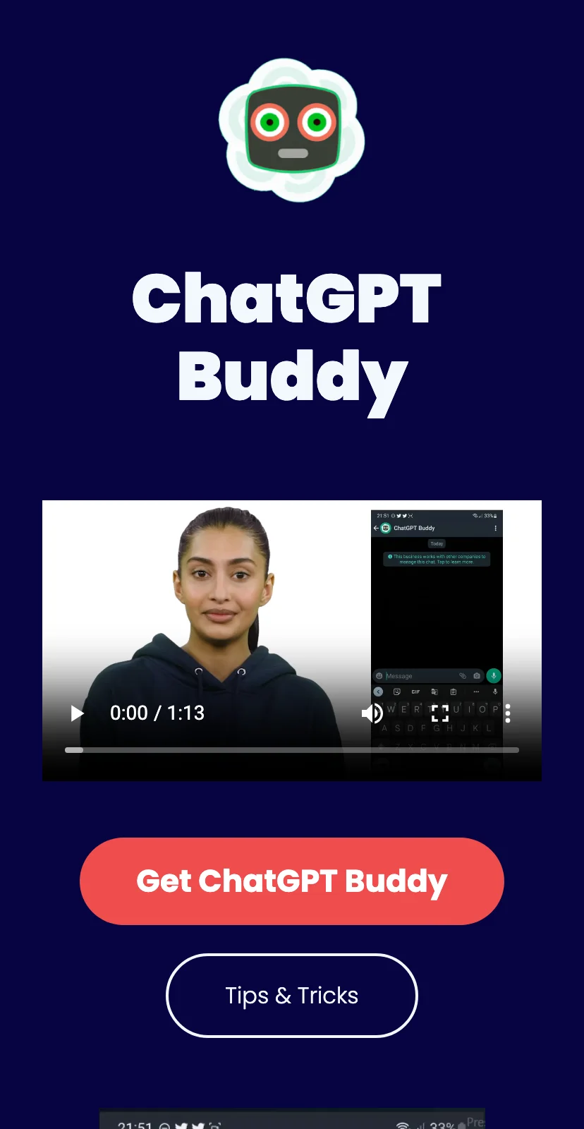 ChatGPT Buddy是一个人工智能(AI)助手,旨在帮助人们更快地解决问题和获得答案。该网站旨在提供高效的友好服务,帮助用户解决各种问题和疑问。只需要在页面上输入您的问题并按“发送”按钮,ChatGPT Buddy将立即为您提供相关答案。无需注册,使该网站使用起来更加方便。 ChatGPT Buddy不仅可以回答一般问题,还可以提供有关各种主题的信息、建议和指南。无论您需要解决学校作业问题、获取包括美食、健康、旅行等在内的生活建议,还是需要在职业发展方面寻求指导,ChatGPT Buddy都可以帮助。您还可以与ChatGPT Buddy聊天,就像在与一个朋友聊天一样。 该网站的设计友好、操作简单,不需要技术技能。ChatGPT Buddy提供了对不同领域的信息查询和提供帮助,而且快速且准确。 用户可以选择不同的语言环境,使得使用更加国际化。值得一提的是,ChatGPT Buddy是完全免费的,这使得大家都能够免费地获取到要用信息。 总之,ChatGPT Buddy是一个非常有用的人工智能助手工具,它可以为用户提供各方面的帮助,解决各种疑难问题,而且免费。如果你有什么问题或者需要指南,尝试使用ChatGPT Buddy,它会让你有不一样的体验。