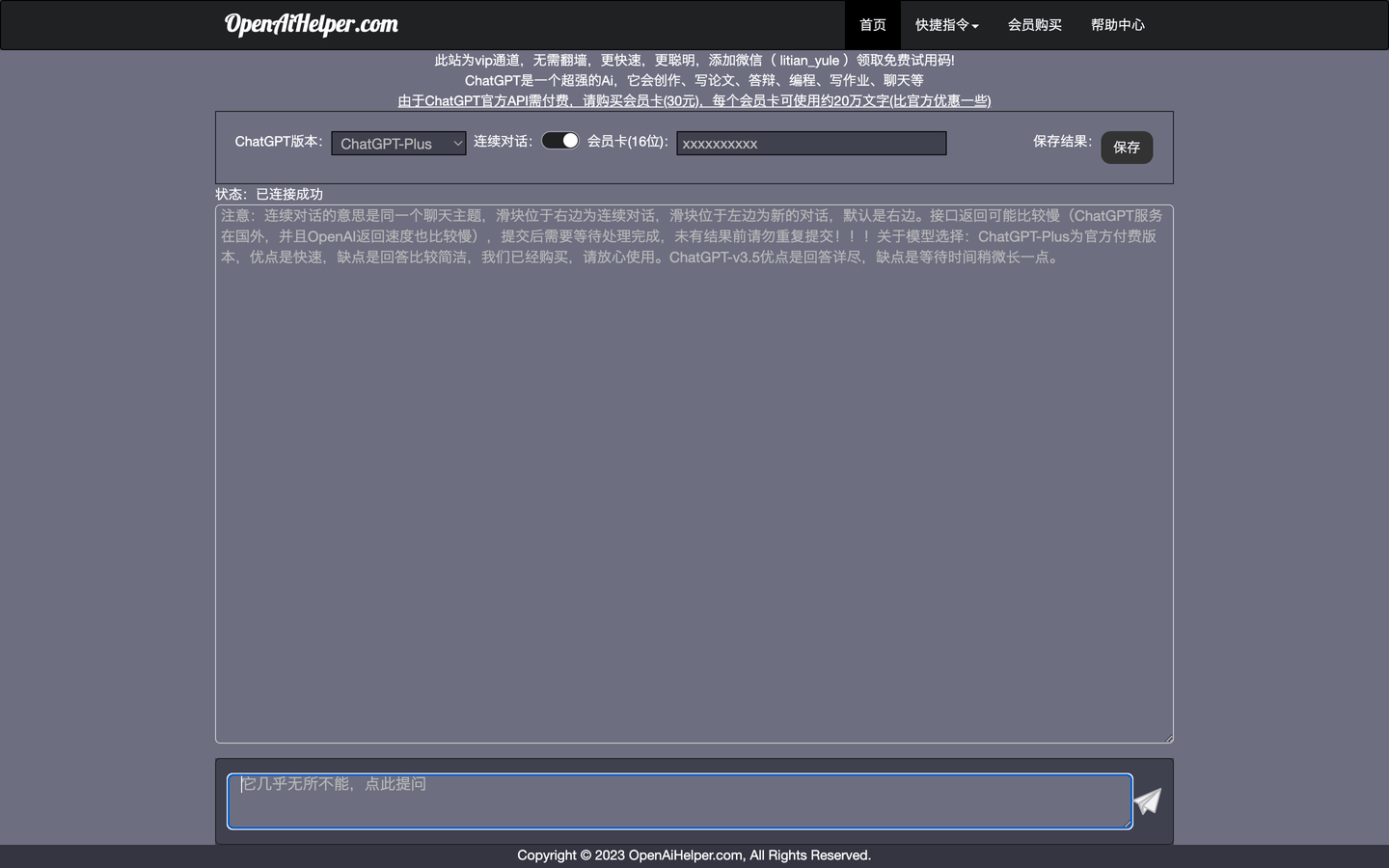 Open AI Helper is a website that offers a ChatGPT Artificial Intelligence assistant to help users with various tasks. The ChatGPT AI assistant can perform different functions based on the user’s requirements, such as answering questions, offering suggestions, and providing advice. This AI assistant is designed to assist users in their daily tasks by providing real-time conversation and recommendations, which makes it easy for users to complete their tasks quickly and efficiently. The website is user-friendly and easy to navigate, which makes it easy for users to access the AI assistant. It has a simple and clear interface, and users can type in their queries in the text box provided on the website. Once the user has entered their query, the AI assistant provides a response or suggestion in real-time. The responses are informative and accurate, which is due to the AI assistant's capability to learn from its interactions with users. Open AI Helper also provides a personalized experience to users by allowing users to customize the ChatGPT AI assistant according to their preferences. The AI assistant can be customized to use a preferred language, display interface, or recommend specific products, services, or websites. The website is ideal for individuals who need quick access to accurate and personalized information or recommendations. Whether you're a student, professional, or busy individual, Open AI Helper can assist you with various tasks, such as answering questions, recommend movies, suggestions for the best restaurant, and many more. The website is available 24/7, making it easy and convenient to access the AI assistant whenever you need it. In summary, Open AI Helper is a useful website that provides a ChatGPT AI assistant to help users with their tasks. The AI assistant is easy to use and available 24/7 and can be customized according to the user's preferences. It's ideal for individuals who need quick access to accurate and personalized information or recommendations in real-time.