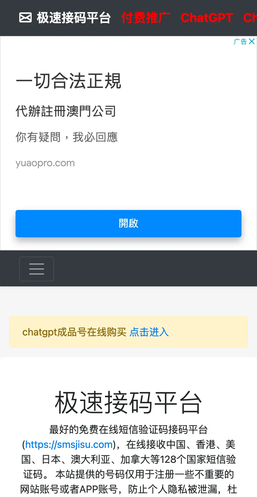 ClearCode是一个免费的在线验证码接收平台,帮助用户快速接收手机短信验证码和语音验证码,提供一站式手机验证码接收服务。作为一款极速接码平台,ClearCode接收的验证码传输快速,有效率高,让用户不再担心错过重要信息。无需注册,取消繁琐的流程,只需简单地在收信箱查看验证码,即可顺利完成注册、找回密码等操作。 网站界面简洁大方,操作简单方便,无广告干扰。在网站右上角可快速切换到英文版,支持国际码的接码,实现真正的全球接码服务。同时提供了历史验证码查询,让用户能快速检索自己可能丢失的验证码,并保障用户信息安全。此外,ClearCode还提供了API接口,方便开发者将其集成到自己的项目中。 总之,ClearCode是一个非常实用的在线验证码接收平台,可以帮助用户在短时间内高效地收取并处理验证码信息,是广大互联网用户必备的工具之一。