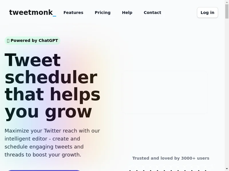 Tweetmonk是一个AI智能化的Twitter线程制作和分析工具。该网站的主要功能包括:创建和安排有吸引力的推文和线程、跟踪你的推文和线程的表现、分析你的Twitter帐户数据以及发现关键字和趋势。 Tweetmonk的智能编辑器可以帮助你创建和计划有吸引力的推文和线程,这可以增加你在Twitter上的曝光率和关注度。它的智能算法可以根据你的Twitter账户数据,发现哪些时间和类型的推文获得最高的互动和转化率,并据此来制定最佳的推文和线程计划。 在数据分析方面,Tweetmonk可以跟踪你的推文和线程的表现,包括点击率、转化率、喜欢和转发率等指标。它还可以分析你的Twitter帐户的关注者、时间表和互动数据,以及发现关键字和趋势,帮助你更好地了解你的受众和市场趋势。 值得一提的是,Tweetmonk还提供了一个用户友好的界面,方便你轻松地使用和管理你的推文和线程。你可以通过登录你的Twitter账户来使用该网站的功能。但需要注意的是,由于Twitter API的新价格政策,只有当前付费用户才能登录Tweetmonk。网站正在努力解决这个问题。