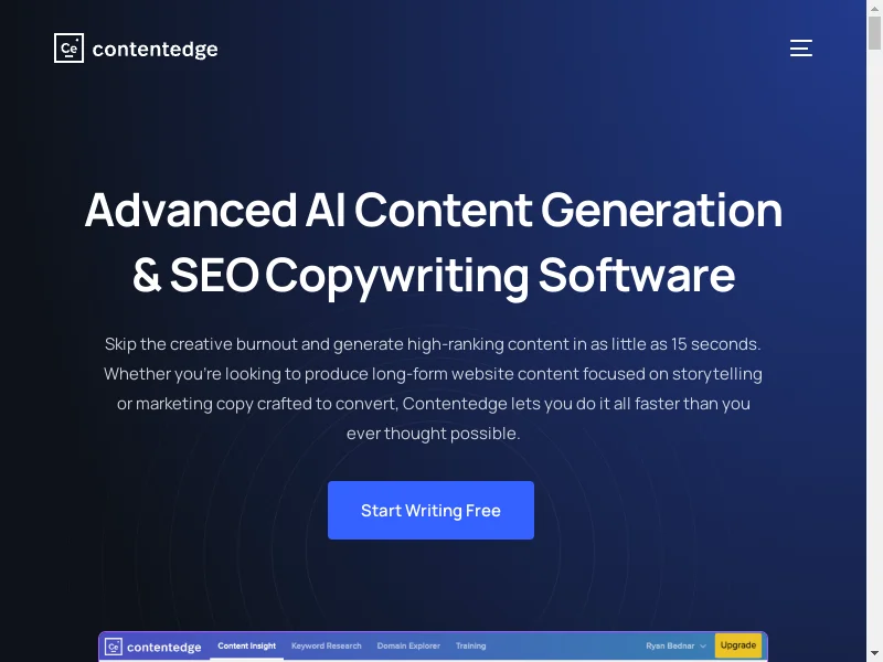Z","dateModified":"2022-10-15T06:48:50Z","description":"Contentedge是一个拥有最佳免费人工智能(AI)文案撰写和SEO内容生成工具的网站。它可以帮助用户快速生成质量高、排名优的文章。该网站在国际上得到广泛使用,特别是在数字营销和SEO领域。Contentedge基于一些关键字和主题,可以快速生成各种类型的内容,例如博客文章、网站标语、产品说明和社交媒体帖子。Contentedge的AI技术可以帮助用户提高生产效率和创造力,同时减少人工撰写所需的时间和成本。与此同时,Contentedge还提供多语言服务和文化敏感的语境。该网站提供免费和付费版本。免费版本包括创建一个帐户和生成500字的内容,而付费版本则可以解锁更多的功能和适用于更多的用途。此外,Contentedge还提供著名数字营销工具,如Google Analytics、SEMrush和Ahrefs的整合服务。总的来说,Contentedge是一个功能强大、易于使用和高效的人工智能写作工具,可以满足用户在数字营销、SEO和内容创建方面的各种需求。"} Contentedge是一个拥有最佳免费人工智能(AI)文案撰写和SEO内容生成工具的网站。它可以帮助用户快速生成质量高、排名优的文章。该网站在国际上得到广泛使用,特别是在数字营销和SEO领域。Contentedge基于一些关键字和主题,可以快速生成各种类型的内容,例如博客文章、网站标语、产品说明和社交媒体帖子。Contentedge的AI技术可以帮助用户提高生产效率和创造力,同时减少人工撰写所需的时间和成本。与此同时,Contentedge还提供多语言服务和文化敏感的语境。该网站提供免费和付费版本。免费版本包括创建一个帐户和生成500字的内容,而付费版本则可以解锁更多的功能和适用于更多的用途。此外,Contentedge还提供著名数字营销工具,如Google Analytics、SEMrush和Ahrefs的整合服务。总的来说,Contentedge是一个功能强大、易于使用和高效的人工智能写作工具,可以满足用户在数字营销、SEO和内容创建方面的各种需求。