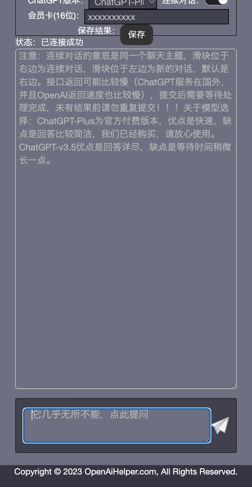 Open AI Helper is a website that offers a ChatGPT Artificial Intelligence assistant to help users with various tasks. The ChatGPT AI assistant can perform different functions based on the user’s requirements, such as answering questions, offering suggestions, and providing advice. This AI assistant is designed to assist users in their daily tasks by providing real-time conversation and recommendations, which makes it easy for users to complete their tasks quickly and efficiently. The website is user-friendly and easy to navigate, which makes it easy for users to access the AI assistant. It has a simple and clear interface, and users can type in their queries in the text box provided on the website. Once the user has entered their query, the AI assistant provides a response or suggestion in real-time. The responses are informative and accurate, which is due to the AI assistant's capability to learn from its interactions with users. Open AI Helper also provides a personalized experience to users by allowing users to customize the ChatGPT AI assistant according to their preferences. The AI assistant can be customized to use a preferred language, display interface, or recommend specific products, services, or websites. The website is ideal for individuals who need quick access to accurate and personalized information or recommendations. Whether you're a student, professional, or busy individual, Open AI Helper can assist you with various tasks, such as answering questions, recommend movies, suggestions for the best restaurant, and many more. The website is available 24/7, making it easy and convenient to access the AI assistant whenever you need it. In summary, Open AI Helper is a useful website that provides a ChatGPT AI assistant to help users with their tasks. The AI assistant is easy to use and available 24/7 and can be customized according to the user's preferences. It's ideal for individuals who need quick access to accurate and personalized information or recommendations in real-time.
