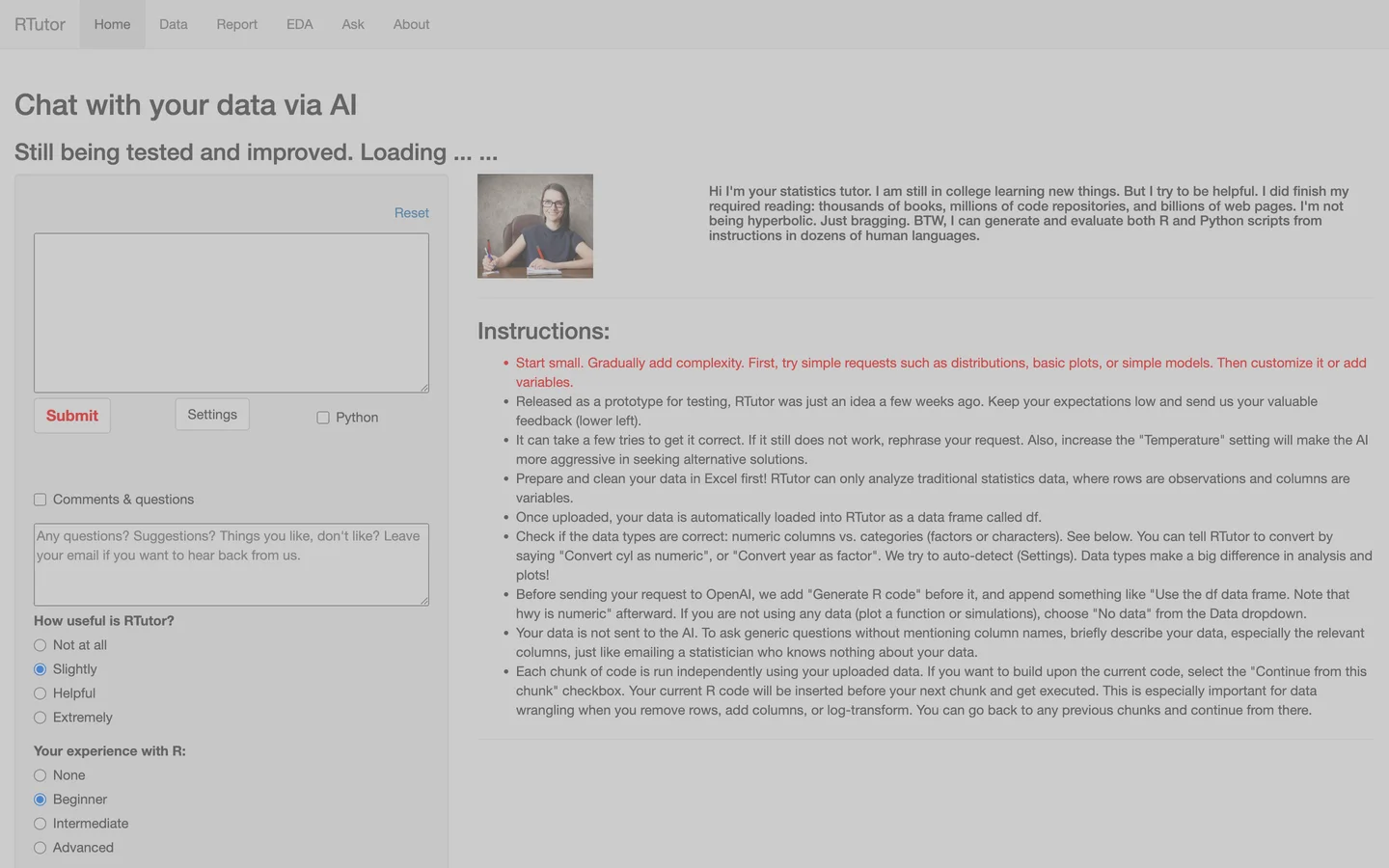 http://rtutor.ai/是一个在线数据科学和统计学习平台,旨在通过提供交互式学习和练习,帮助学生和专业人士提高数据分析技能。这个平台提供了大量数据科学和统计相关的课程,包括统计学、回归分析、机器学习、数据挖掘、数据可视化等等。除了提供视频课程和在线练习,rtutor.ai还提供了许多R语言 -
