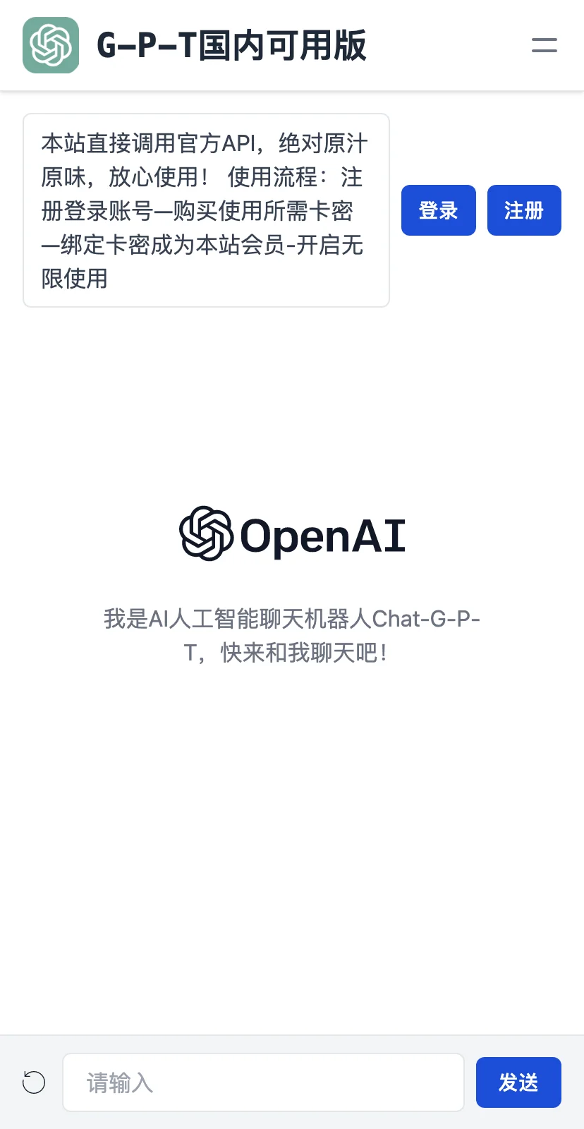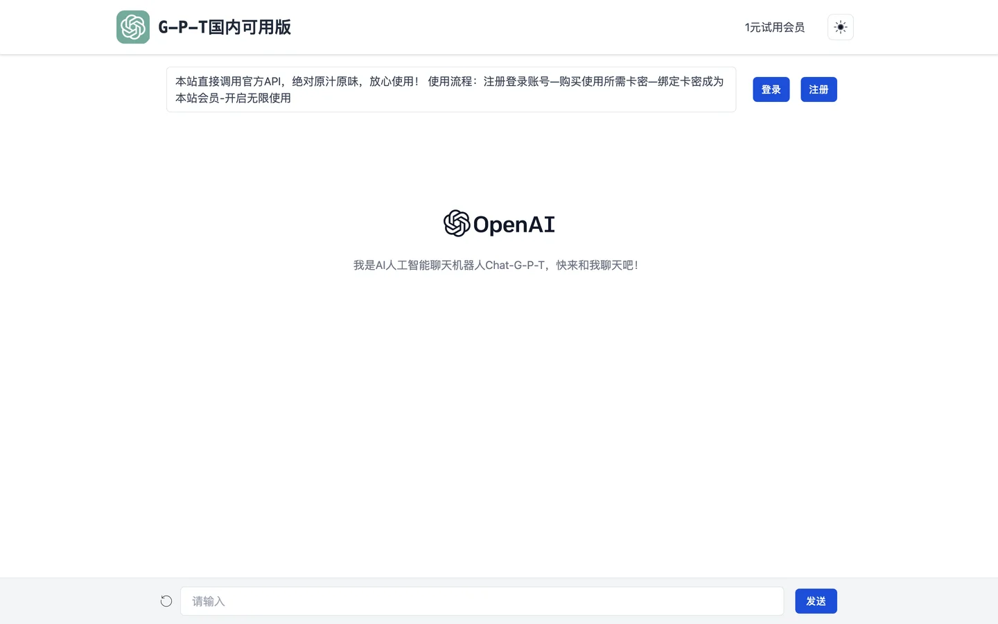 G-P-T国内可用版是一个基于OpenAI GPT模型的聊天机器人交互网站。可以通过注册登录账号、购买所需卡密、绑定卡密成为本站会员,进而享受无限使用。该网站直接调用官方API,保证原汁原味,放心使用。除此之外,该网站还提供1元试用会员服务。 值得注意的是,该网站的聊天机器人Chat-G-P-T非常智能,能够回答用户的各种问题,包括娱乐、健康、历史、科技、时事等多个领域的问题。而且,该聊天机器人具有自我学习和演进能力,能够更好地满足用户的需求。同时,该聊天机器人还提供多种功能,如语音聊天、智能闹钟、诗词学习等等,用户可以按需使用。 总之,G-P-T国内可用版是一个多功能、智能且可信赖的聊天机器人交互网站,无论你是想聊天还是学习知识,它都会给你提供最优质的服务。