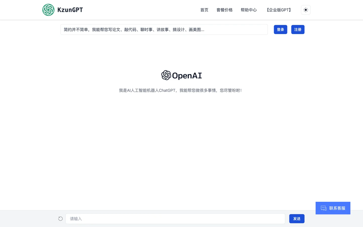 Kzun.cn是一个AI机器人ChatGPT的网站,它提供在线的文字聊天服务,帮助用户写论文、敲代码、聊时事、讲故事、搞设计、画美图等多种事情。用户可以在该网站注册并登录他们自己的ChatGPT账户,轻松与AI机器人ChatGPT聊天,快速解决问题。该网站通过自然语言处理技术,匹配用户提出的问题并给出尽可能准确的答案。用户还可以根据自己的需求,选择不同的套餐价格,以最优惠的价格获取更多的服务。 此外,KzunGPT网站还提供了一个企业版GPT,可以帮助企业解决文字处理和客服问题。企业可以自定义ChatGPT的答案,使用ChatGPT来协助企业解决客户问题,提高客户满意度。 总的来说,KzunGPT网站是一个功能强大的AI机器人ChatGPT聊天平台,可以为用户提供快速的解答和服务,而且用户对它提供的问题和答案进行的反馈可以帮助改进和完善该平台的服务。该网站还非常注重用户的隐私保护和数据安全,在保护用户信息的同时,为用户提供高效、稳定、智能的服务。