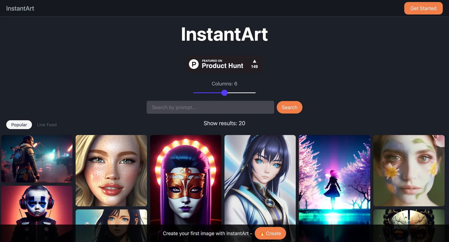 借助 InstantArt 上稳定传播 AI 的强大功能,在几秒钟内创作原创、免费和无限的艺术作品。超过 25 个经过微调的模型,免费生成您可以想象的任何东西。使用我们最先进的工具释放您的创造力。 -