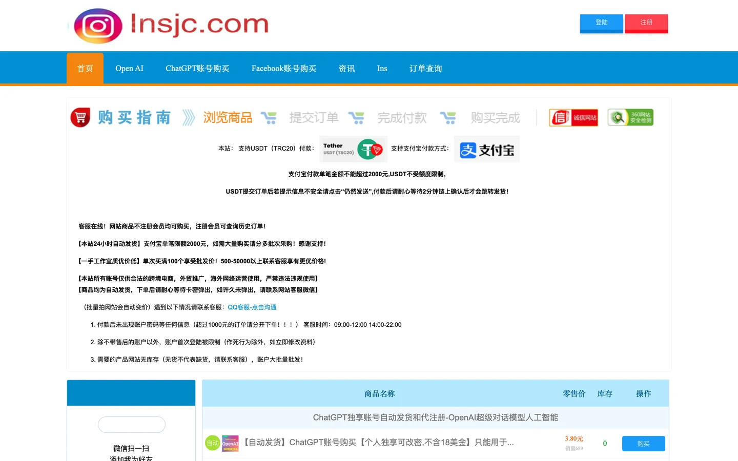 Insjc是一个专门出售Instagram账号的网站,提供稳定、高质量的IG账号,适用于海外电商、网络营销等用途。它支持多种付款方式,包括USDT和支付宝,客服也在线提供支持。此外,它还提供白号出售、老号出售、小号注册、粉丝号批发等服务,能够满足不同的需求。这个网站的账号来源安全可靠,所有账号均为自动发货,方便快捷。如果您是一位希望在Instagram平台上开展业务的人士,Insjc是您可以信赖的选择。