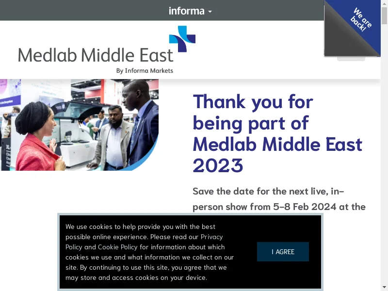 ediacenter.com/gtm.js?id='+i+dl;f.parentNode.insertBefore(j,f); })(window,document,'script','dataLayer','GTM-PG2Q4PP'); Medlab Middle East是一个医疗器械博览会和会议的官方网站,致力于连接医疗保健领域的专业人士、制造商和供应商。该网站提供了有关最新医疗技术和行业趋势的详细信息。它将展示各种医疗保健产品,包括诊断、手术设备和实验室设备等。此外,网站还提供有关博览会和会议的详细信息,如地点、日期、主题和演讲者等。网站还包括对医疗设备的评估、市场和趋势分析的文章和报告,这些内容可以帮助医疗器械公司和医疗保健专业人士了解行业最新动态。该网站的目标是为医疗保健领域的专业人士提供宝贵的信息和机会,以促进业务增长和行业发展。