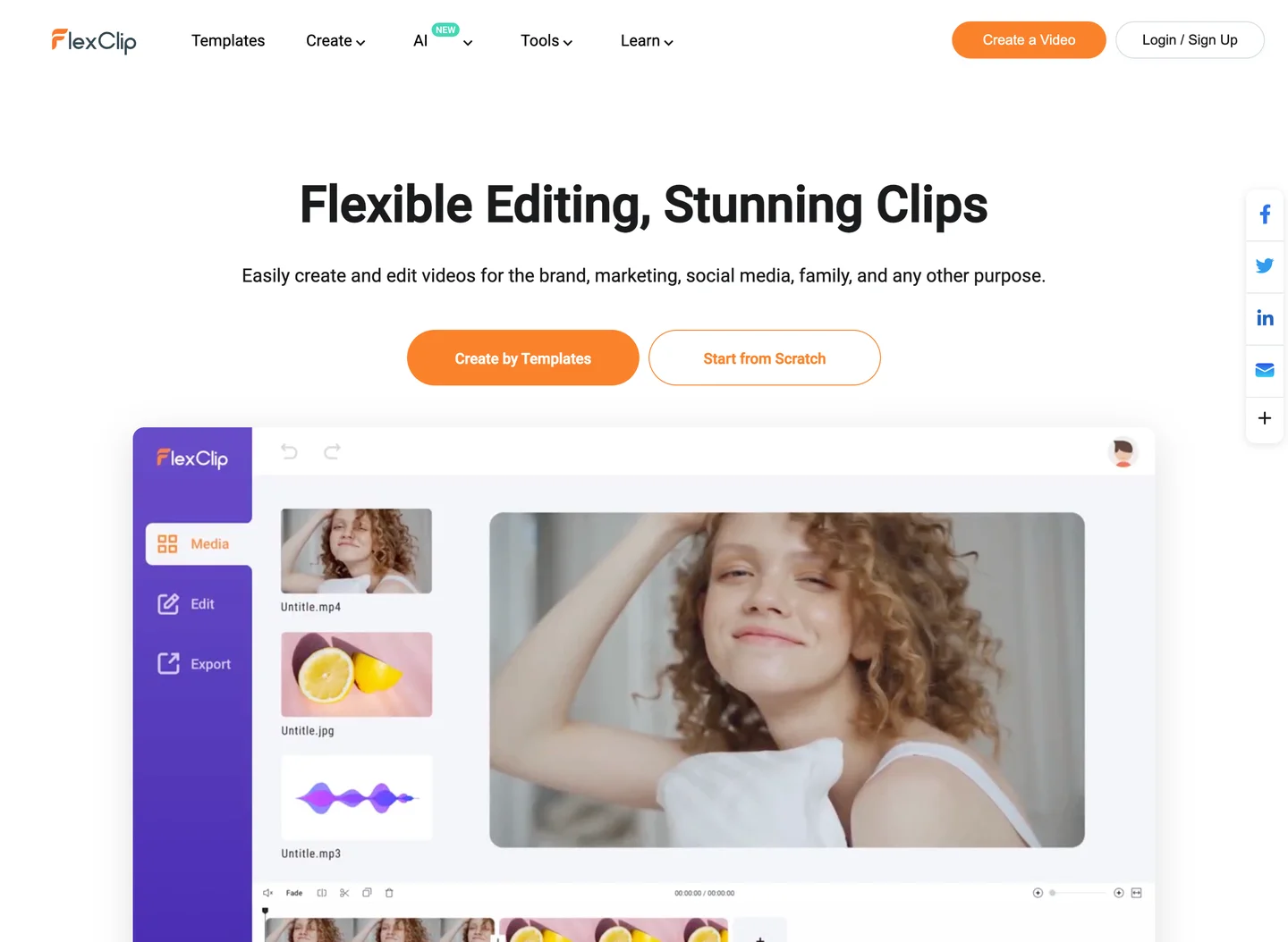 FlexClip是一款强大的在线Ai视频制作软件,让你轻松制作精彩的视频。FlexClip的AI工具可快速完成繁琐的编辑任务,帮助你轻松生成字幕、将文本转换为逼真的语音以及去除图像背景等 -